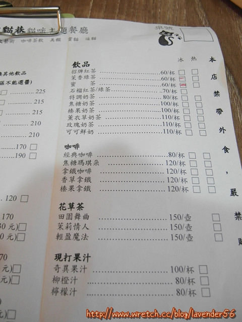 然後有飲料,我記得有冷熱綠茶、冷熱紅茶、冷熱咖啡、蜜茶