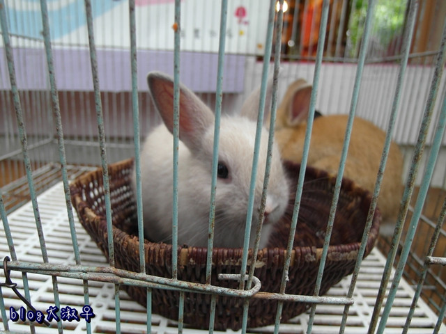 門口一進去有個小籠子,裡面有三隻可愛的小兔兔